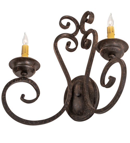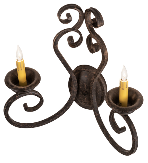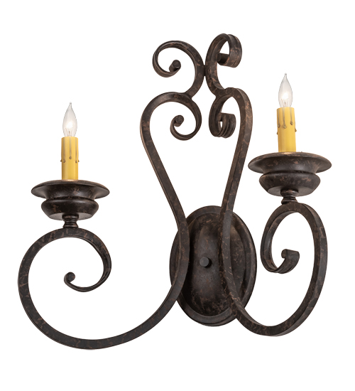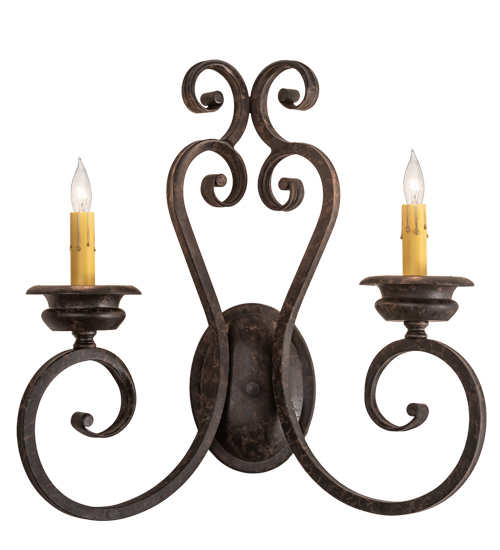 Beauty and grace come to light with this elegant wall sconce. The luminaire is highlighted with an exquisite scroll design. 2 Ivory faux candlelights are perched on distinctive bobeches featured in a Coffee Bean finish. Perfect to illuminate fine homes, hotels, restaurants and other residential and commercial spaces. This classic lighting fixture complements any interior design. Handcrafted by highly skilled artisans in our 180,000 square foot manufacturing facility in Yorkville, New York. Custom colors, styles and sizes are available. UL and cUL listed for damp and dry locations.