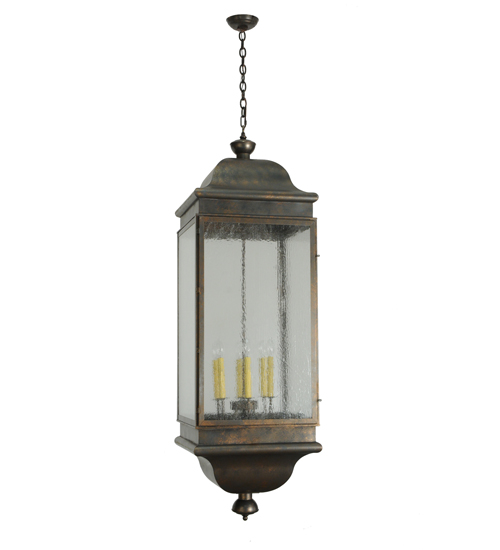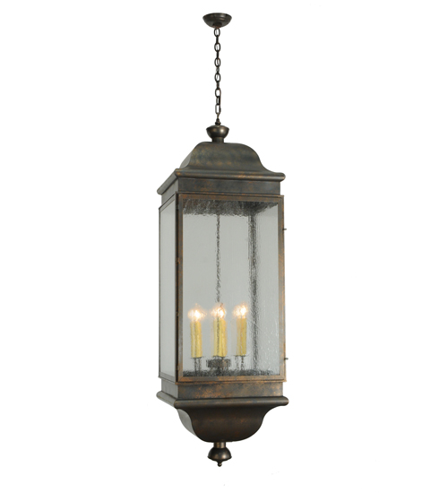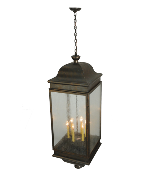 Expert craftsmanship comes to light with a stunning classic lantern design that entices. The exquisite Gascony Pendant features a Clear Seeded Glass lens that reveals 6 Ivory faux candlelights illuminating from within. The lantern is enhanced with frame and hardware which are featured in a Gilded Tobacco finish. The overall height ranges from 61 to 96 inches as the chain length can be easily adjusted in the field. Ideal for entryways, foyers and other spaces in residential, hospitality and commercial spaces. Custom crafted in our 180,000 square foot manufacturing facility in Yorkville, New York. Candlelight colors, metal finishes and fixture sizes can be customized to your needs. UL and cUL listed for dry and damp locations.