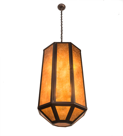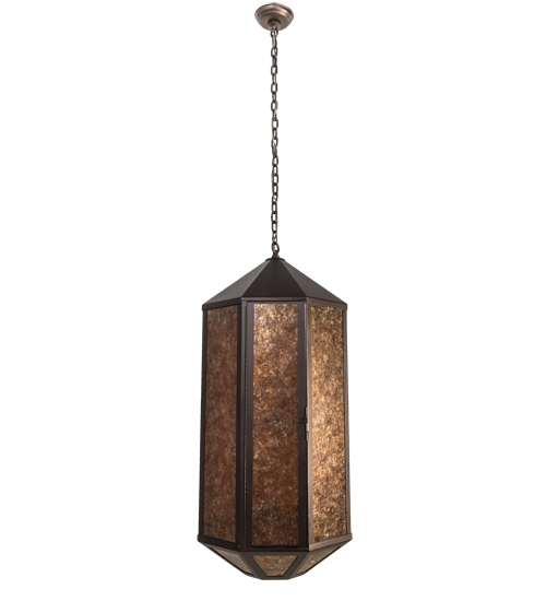 Classic design and an appealing multifaceted styling create a rich luxurious look for Agnes. This high-styled ceiling pendant features Amber Mica, which is enhanced with a frame and hardware featured in a Mahogany Bronze finish. This pendant is ideal to complement a variety of architectural styles for today’s residential, hospitality and commercial environments. Custom crafted in our 180,000 square foot manufacturing facility in Yorkville, NY, this fixture is offered in custom sizes, finishes, and styles, as well as energy efficient lamping options such as LED. The pendant is UL and cUL listed in dry and damp locations.