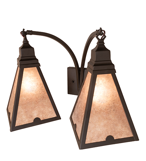 Handsome and stylish… This wall sconce adds stunning beauty to any room in high style. The Arnage wall sconce features twin Craftsman-styled shades adorned with unique, diminutive arc-shaped metal accents. The shades feature a Silver Mica lens to diffuse the light beautifully. The frame, curved arms, and hardware are offered in an Oil Rubbed Bronze finish. Place this wall fixture in hallways, entryways, and other residential and commercial areas from Somerville, Massachusetts, to Palm Coast, Florida, to Avondale, Arizona. The Arnage Wall Sconce is included in our American-designed, handcrafted Craftsman Lighting Collection. It is UL and cUL listed for dry and damp locations.