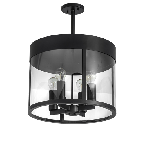 This stunning fixture with a chic motif and a curved shape is reminiscent of the high style of the Mid-century Modern era. The Cilindro Campbell Pendant is hand-finished in Solar Black. The fixture features a Clear Glass lens that reveals four Edison-style lamps for installation in hallways and foyers in homes and restaurants from Montpelier, Vermont, to Baton Rouge, Louisiana, to Salem, Oregon. The Cilindro Campbell Pendant is included in our American-made, American-designed, handcrafted Modern Lighting Collection and manufactured in Yorkville, NY. UL & cUL listed for dry and damp locations.