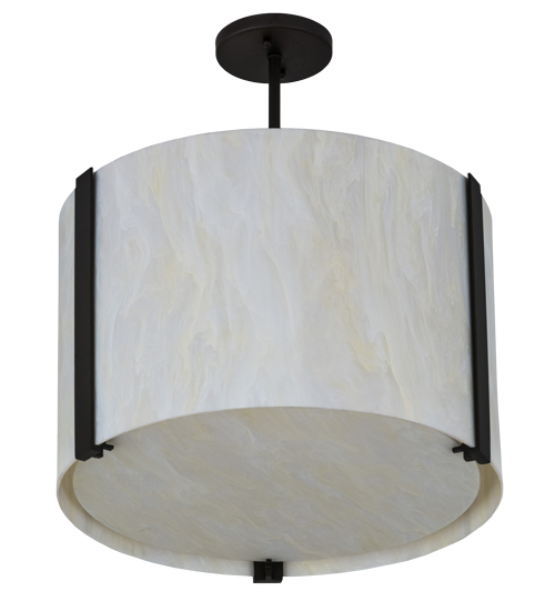 An architectural style for today�s popular interiors, this Cilindro ceiling fixture is designed with the stunning Botticino Idalight shade with matching bottom diffuser. The shade is complemented with linear accents and hardware featured in an Oil Rubbed Bronze finish. Handcrafted by highly skilled artisans our Yorkville, NY manufacturing facility in the USA. Custom options include endless possibilities in sizes, designs and colors, as well as dimmable energy efficient lamping options such as LED. The fixture is UL and cUL listed for damp and dry locations.
