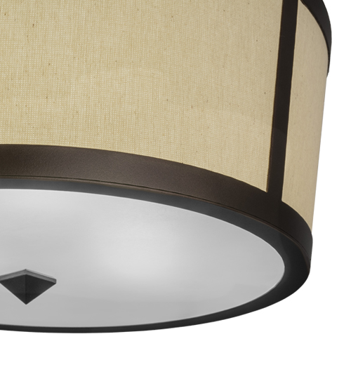 Designed with a tapered profile and a clean architectural look, this appealing and versatile ceiling fixture defines a casual, yet refined aesthetic. This fixture features Natural Textrene which is complemented with a Contrail Mist Idalight bottom diffuser. The hardware, frame and decorative accents are featured in a Mahogany Bronze finish. Handcrafted by highly skilled artisans in our manufacturing facility in Upstate New York, this transitional styled semi-flushmount is available in a wide range of custom choices including various designs, colors, sizes and dimmable energy efficient lamping options such as LED. This fixture is UL and cUL listed for damp and dry locations.