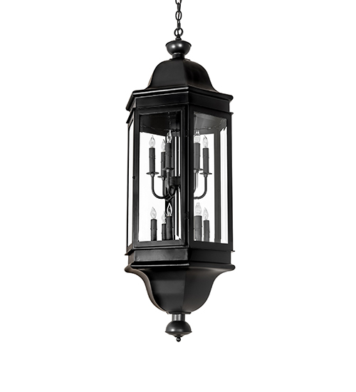 Expert craftsmanship comes to light with a stunning classic lantern design that entices. The exquisite Gascony pendant features a Beveled Clear Glass lens, revealing 12 complementary faux candlelights illuminating from within. The lantern is enhanced with a frame and hardware featured in a Solar Black finish. The overall height ranges from 54 to 92 inches, as the chain length can be easily adjusted in the field to accommodate your specific lighting application needs. The classic styled fixture is ideal for residential, hospitality, and commercial settings. The Gascony Lantern Pendant is included in our American-made, American-designed, handcrafted Traditional Lighting Collection. It was manufactured in Yorkville, New York. UL and cUL listed for dry and damp locations. The fixture was created for The Memorymakers at Landmark Hospitality, which owns The Albion Summit in Summit, New Jersey.