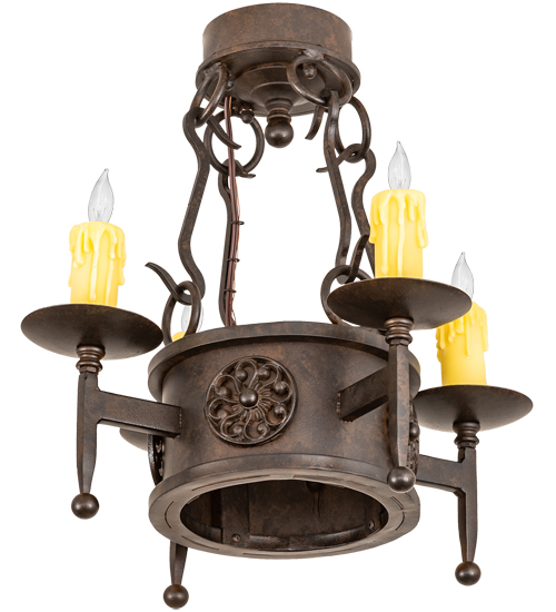 Lorenzo combines a rich charm and artistic look in this elegant lighting design. Floral medallions accentuate this stunning ceiling fixture, which is adorned with 4 exquisite Ivory faux candlelights perched on bobeches with long ballpoint stems. The fixture is enhanced with sturdy, hand forged hardware and a scrolled finial featured in a handsome Chestnut finish. The fixture is ideal for entryways, dining areas, lobbies and other rooms in a variety of residential and commercial settings. Handmade by highly skilled artisans in our 180,000 square foot manufacturing facility in Yorkville, New York. Custom options available. UL and cUL listed for dry and damp locations.