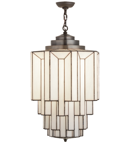 Designed with the glitz and glam of old fashioned movie theaters, Paramount evokes a romantic allusion with a dramatic lighting design that features art glass created using our famous copperfoil construction. Multi layers and levels of enclosed glass cylinders create an extraordinary dimensional effect. A three-step hub, featured in an Antique Iron Gate finish, crowns the shade. Handcrafted in the USA, this fixture is offered in custom sizes, styles and colors. UL and cUL listed for dry and damp locations.