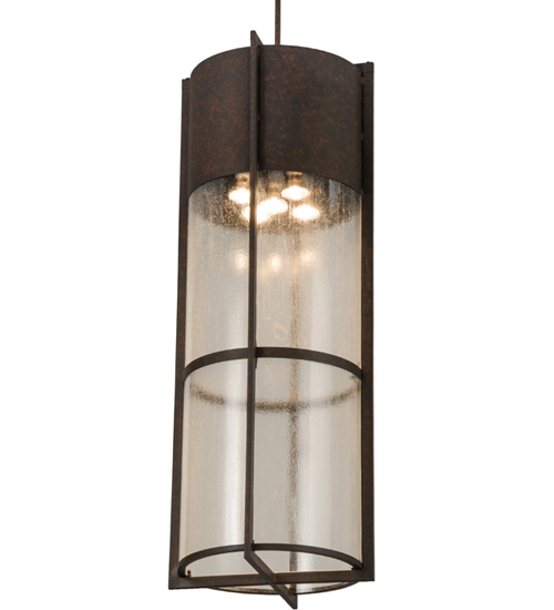A classic cylindrical lighting design updated with modern materials and technology. Cajun Spice finished hardware, decorative accents and frame complement the Clear Seeded Glass lens for a dramatic look. The overall height ranges from 52 to 141 inches as the stem can be adjusted in our factory to meet your lighting needs. The Shelby Pendant is featured in our American made, American designed handcrafted Contemporary Collection. Manufactured in Yorkville, New York. UL and cUL listed for dry and damp locations.