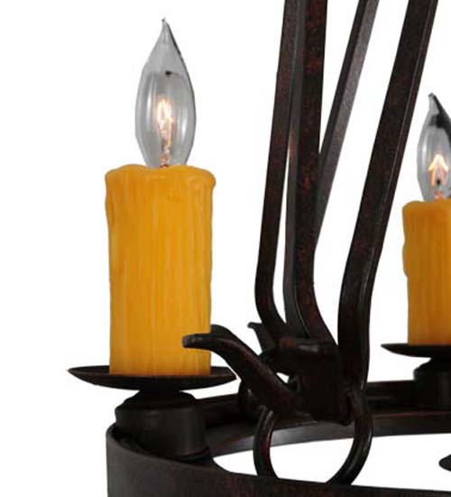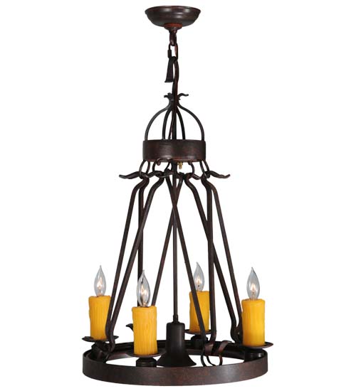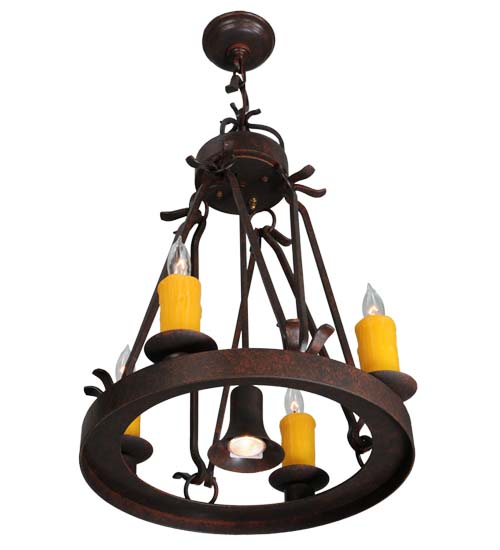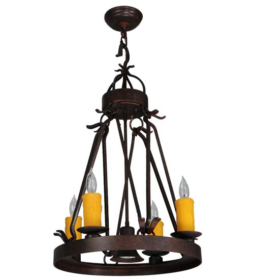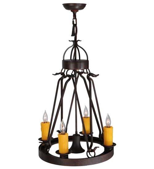 Blending an exquisite style with a rich distinguished look, the Lakeshore features a Cajun Spice Textured finished steel ring that provides timeless beauty and beautiful illumination. Four Amber faux candlelights perched on bobeches, make this fixture ideal for illuminating dining areas, conference tables, lobbies and other residential and commercial spaces. A MR16 downlight delivers functional illumination. The fixture is handcrafted by artisans in the USA in our manufacturing facility in Yorkville, New York. Custom colors, styles and sizes are available, as well as dimmable energy efficient lamping options such as LED. The fixture is UL and cUL listed for damp and dry locations.