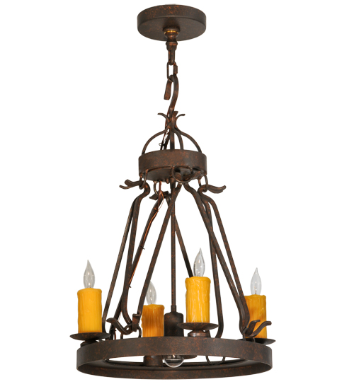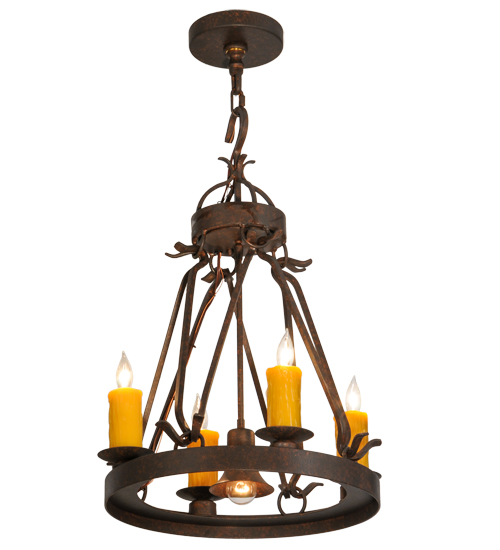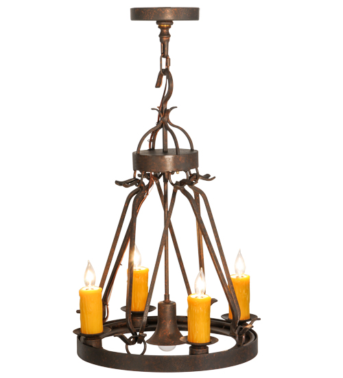 Blending an exquisite style with a rich distinguished look, the Lakeshore features a Cajun Spice finished steel ring that provides timeless beauty and beautiful illumination. Four Amber faux candlelights perched on bobeches, make this fixture ideal for illuminating dining areas, conference tables, lobbies and other residential and commercial spaces. Its MR16 downlight delivers functional illumination on surfaces below. The fixture is handcrafted by artisans in the USA in our manufacturing facility in Yorkville, New York. Custom colors, styles and sizes are available, as well as dimmable energy efficient lamping options such as LED. The fixture is UL and cUL listed for damp and dry locations.