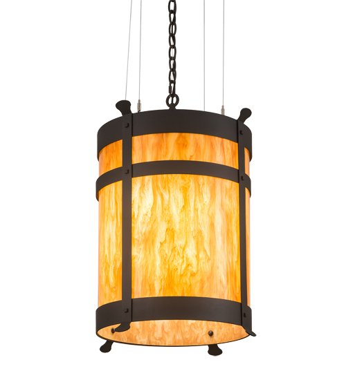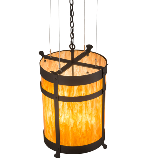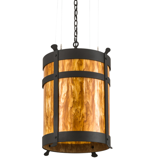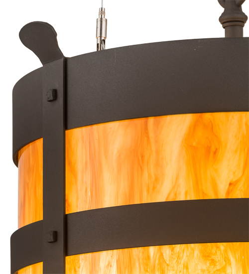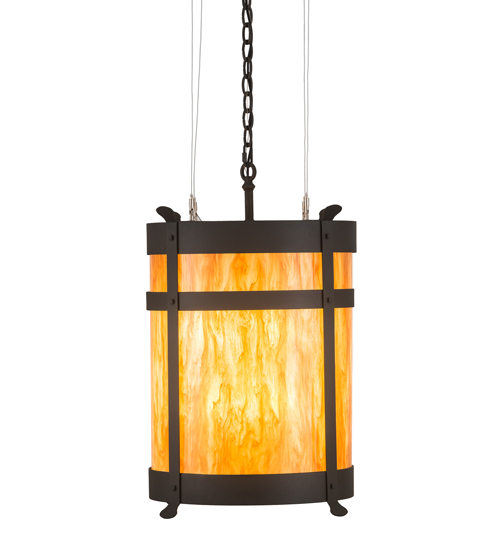 Integrating an elegant style with a classic distinguished look, the pendant is custom crafted with an Ambra Siena Idalight diffuser. The shade is complemented with a rugged curved frame, which is featured in a Wrought Iron finish and adorned with Beartooth-like, vertical metal accents. The pendant is handcrafted by highly skilled artisans at the foothills of the Adirondack Mountains. Custom colors, styles and sizes are available, as well as dimmable energy efficient lamping options such as LED. The pendant is UL and cUL listed for damp and dry locations.