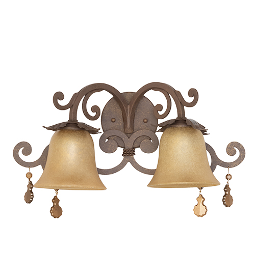 Designed like holiday bells in a Hand painted Gold finish, the Christiana wall sconce features two exquisite shades which are enhanced with scrollwork in a Pompeii Gold finish. Decorative accents inspired by bell clackers reveal Clear Crystal Beads with Custom Painted finials. Handcrafted in our Yorkville, NY manufacturing facility, this fixture is offered in custom sizes, finishes and designs, plus dimmable energy efficient lamping options such as LED. The 20-inch wide sconce is UL and cUL listed for dry and damp locations.