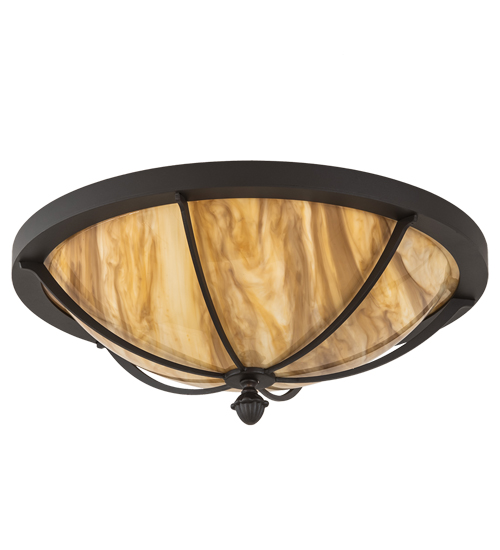 The stunning Dominga ceiling fixture features a Travertine Idalight shade. The striking diffuser is enhanced with a handsome frame, hardware and decorative accents featured in a Wrought Iron finish. Dominga is ideal for illuminating hallways, living spaces and other rooms in residential, hospitality and commercial environments. Handcrafted by highly skilled artisans in our 180,000 square foot manufacturing facility in Yorkville, New York. Lens colors, metal finishes and designs can be customized to your preference. Dimmable energy efficient lamping options are offered. UL and cUL listed for damp and dry locations.