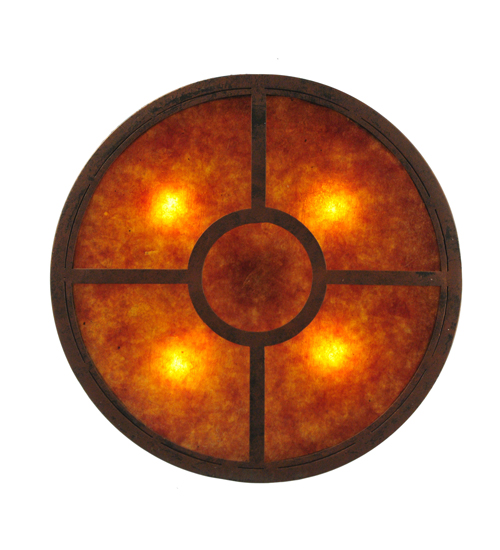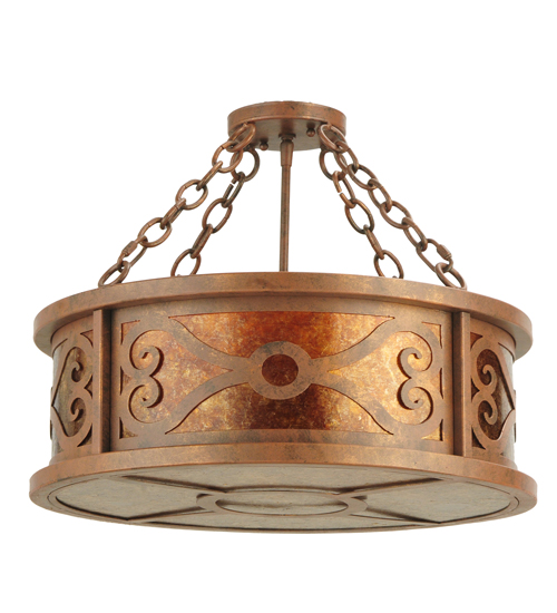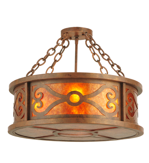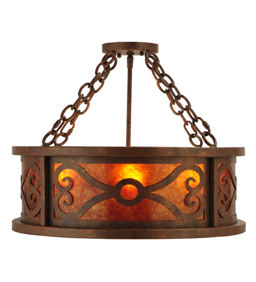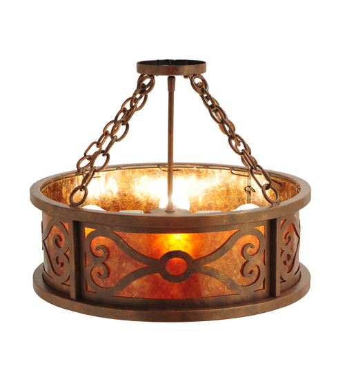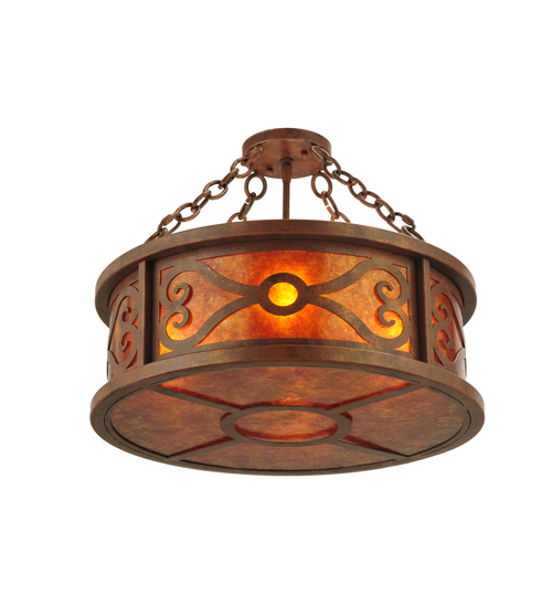 A distinctive lighting design. Donya reveals an exquisite rotund profile with an appealing design that combines Antique Rust finish Hand-Forged Iron scrollwor with an Amber Mica diffuser. This fixture reflects a blend of old-world craftsmanship and 21st century technology. The ceiling fixture is handcrafted by talented artisans in our 180,000 square foot manufacturing facility in Yorkville, New York. The shade color, metal finishes and fixture sizes can be customized to your needs. UL and cUL listed for dry and damp locations.