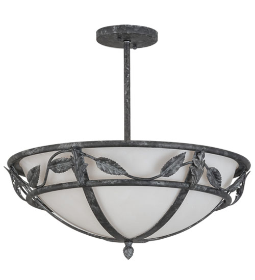Inspired by Nature, Estelle features a stunning leaf and vine design that accents Whitestone Idalight to evoke a subtle, yet dramatic shadow effect when illuminated. The decorative accents, frame and hardware are featured in a Smoke finish. This fixture is handmade by highly skilled artisans at the foothills of the beautiful Adirondack Mountains in the USA. Options include custom designs, sizes, colors and dimmable lamping. The 18-inch wide fixture is UL and cUL listed for damp and wet locations.