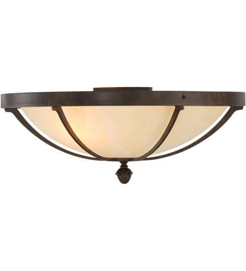 This stunning Dominga ceiling fixture features a Sahara Taupe Idalight shade. The striking diffuser is enhanced with a handsome frame, hardware and decorative accents featured in a Classic Rust finish. Dominga is ideal for hallways, living spaces and other rooms in residential, hospitality and commercial environments. Handcrafted by highly skilled artisans in our 180,000 square foot manufacturing facility in Yorkville, New York. Lens colors, metal finishes and designs can be customized to your preference. Dimmable energy efficient lamping options are offered. The ceiling fixture is UL and cUL listed for damp and dry locations.