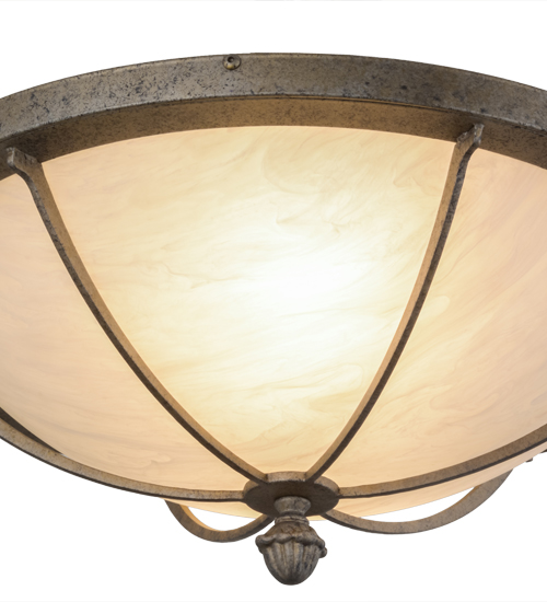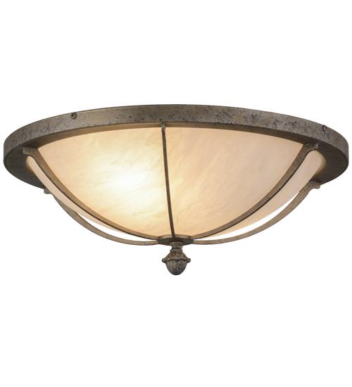 Inspired by the rustic elegance of ancient Greek architecture, this stunning steel ceiling fixture features an Fleshtone Idalight shade, with Gold Highlights, for a marbleized look. The fixture is enhanced with a frame, hardware and a decorative accent featured in a Corinth finish for an old world look. The fixture is ideal for hallways, living spaces and other rooms in both residential and commercial environments. The fixture is by highly skilled artisans in our 180,000 square foot manufacturing facility in Yorkville, New York. Custom sizes, styles and colors are available, as well as dimmable, energy efficient lamping options such as LED. UL and cUL listed for dry and damp locations.