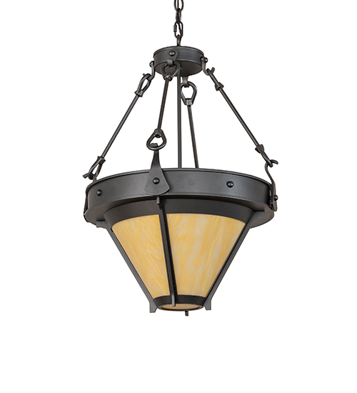 Inspired by impressive lighting fixtures found in European castles… This ceiling pendant is highlighted by a stunning Botticino Idalight shade with a matching bottom diffuser. The luminaire also features a rugged metal crown border in Wrought Iron. The overall height ranges from 24 to 180 inches, as the chain can be easily adjusted on location. The Nehring Inverted Pendant is featured in our American-made, American-designed, handcrafted Gothic Lighting Collection. The fixture is manufactured in Yorkville, New York. UL and cUL listed for dry and damp locations.