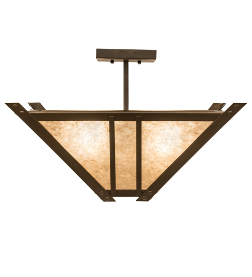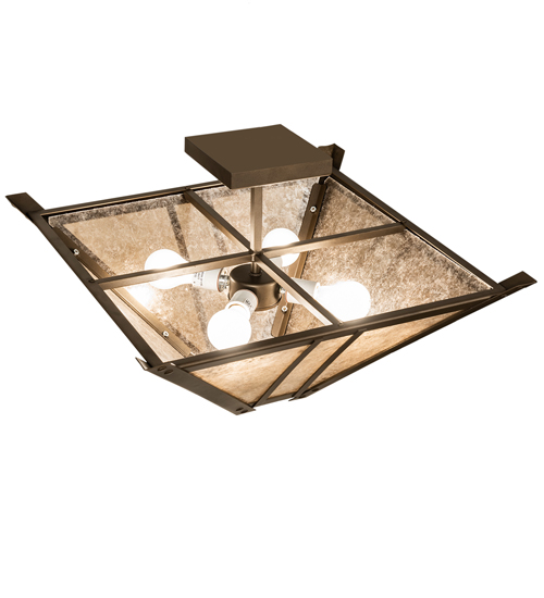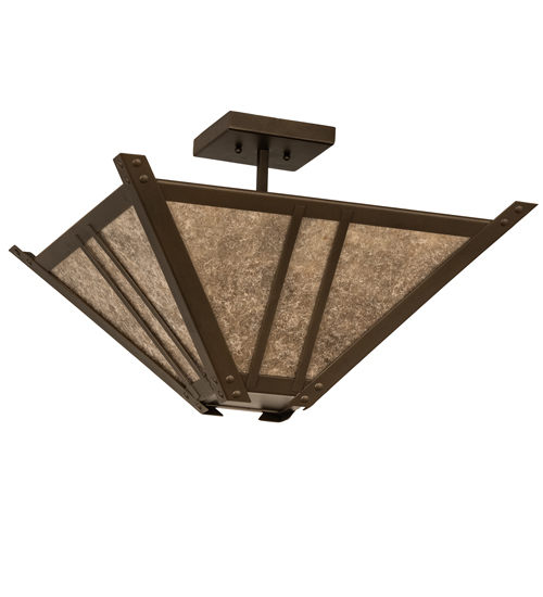 Evocative of the Craftsman period. This handsome ceiling fixture adds warmth and authentic appeal to interior spaces while creating a visually pleasing experience with welcoming ambient light. Stunning Silver Mica is complemented with a Mission styled straight line design. The shade is enhanced with a Tyler Bronze finish. The Arta Semi-Flushmount is included in our American made, American designed handcrafted Arts & Crafts Lighting Collection. Manufactured in Yorkville, New York. UL and cUL listed for dry and damp locations.