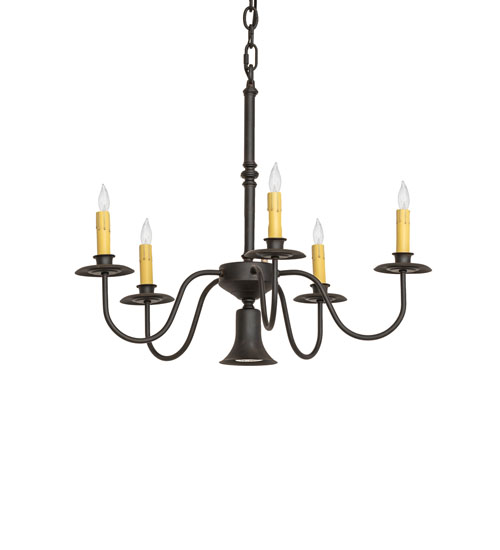 Graceful elegance is captured beautifully with Eden. This sophisticated chandelier is adorned with 5 Ivory faux candlelights with Customer supplied Candelabra lamps for beautiful ambient illumination which is complemented with a Customer supplied Downlight for functional lighting. The curved arms and hardware are featured in a warm Chestnut finish. Handcrafted in the USA, custom options include made-to-order sizes, finishes and designs. Dimmable energy efficient lamping options such as LED are available. The 22-inch wide chandelier is UL and cUL listed for dry and damp locations.