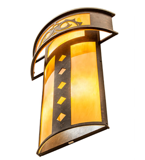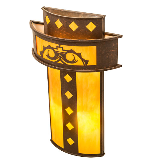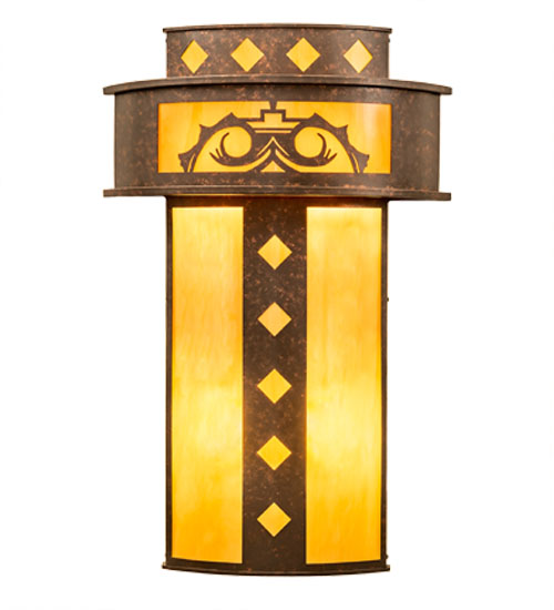 Rich charm and and elegance come to light with Tiara. This regal styled wall sconce is designed as a dramatic accent for entryways and other spaces in residential, hospitality and commercial settings. This enchanting wall fixture features Amber Quartz Idalight complemented with a scrolled design and bands of diamond accents in a Copper Rust finish. Handcrafted by highly skilled artisans in our 180,000 square foot manufacturing facility. Available in special diffuser colors, finishes and sizes. UL and cUL listed for dry and damp locations.