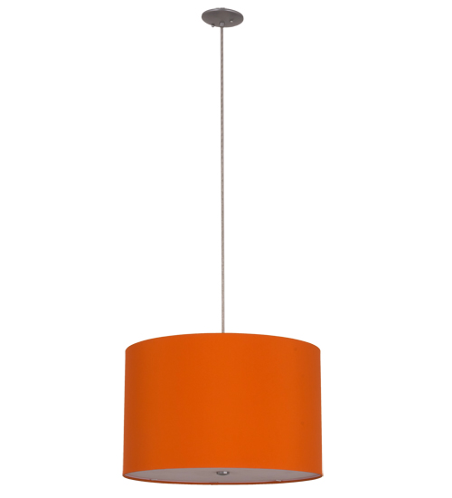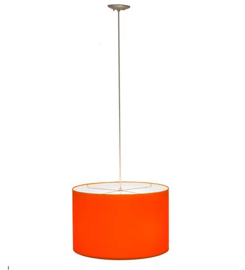 This stylish pendant is designed with a Sparkle Silver and Orange linen styled Textrene shade, which is complemented with a Satin finished Statuario Idalight bottom diffuser. The pendant is ideal for illuminating fun interiors in a home, resort or theme park and will complement any space or decor. The fixture is handcrafted by artisans in our manufacturing facility in the USA. Custom colors, styles and sizes are available. Energy efficient lamping options are offered. The pendant is UL and cUL listed for damp and dry locations.