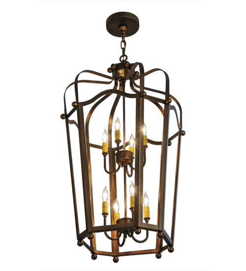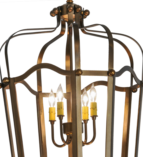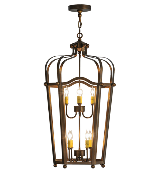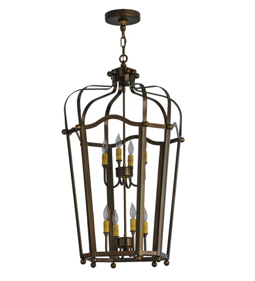 Utilizing a blend of timeless craftsmanship and classic design, the ever-popular Citadel brings home unsurpassed quality and shapely appeal. Beautiful ambient light is projected using two 4-light faux candelabras from within this pendant, which features an open profile. Citadel is enhanced with a dramatic design and frame featured in an Antique Copper finish. The fixture is handcrafted by skilled artisans in our American factory in Upstate New York. Custom options include various sizes, colors, designs and dimmable energy efficient lamping. UL and cUL listed.
