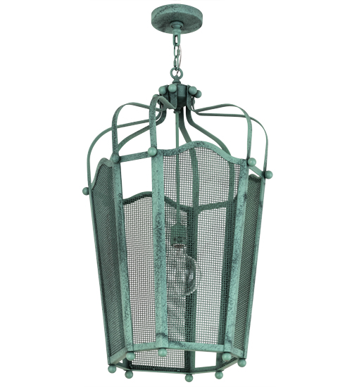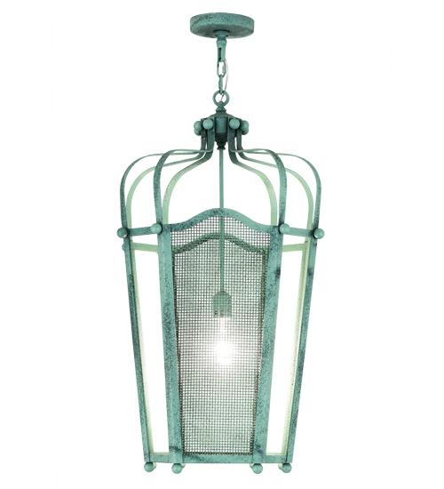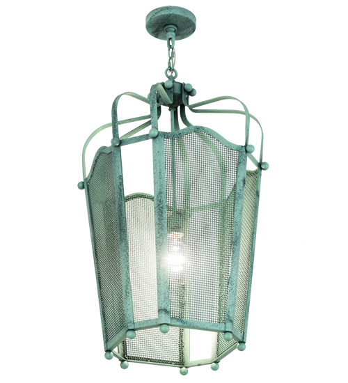 Utilizing a blend of vintage craftsmanship and modern technology, the ever-popular Citadel brings home unsurpassed quality and appeal. The shade features mesh panels which are complemented with an appealing design and a frame featured in a Verdant Green finish. The fixture, which includes an Edison styled lamp that illuminates from within, is handcrafted by artisans in our factory in Upstate New York. Custom options include various sizes, colors, designs and dimmable energy efficient lamping options. Such as LED The fixture is UL and cUL listed for damp and dry locations.