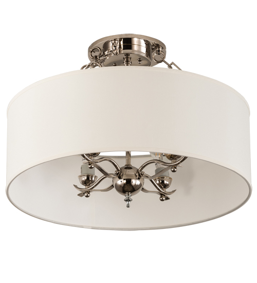 Designed with a curvaceous profile that fits into luxury homes, hotels and other commercial and hospitality locations. This elegant ceiling fixtures defines a distinctive sophisticated aesthetic. The Eggshell Textrene shade is complemented with hardware featured in a Polish Nickel Plated finish. Custom crafted by highly skilled artisans in our 180,000 square foot manufacturing facility in Yorkville, NY. Custom sizes, finishes and diffuser colors available. UL and cUL listed for dry and damp locations however we do not recommend installing it in spaces that experience a large amount of moisture due to the fabric shade.