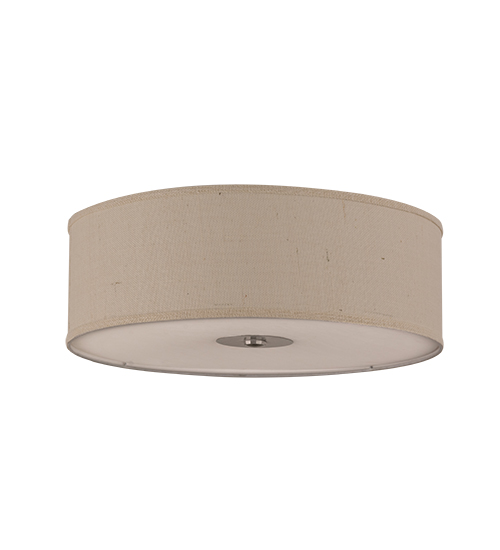 Designed with an attractive round profile that fits into your home, commercial or hospitality location, this ceiling fixture defines a distinctive sophisticated aesthetic. The White Burlap shade is enhanced with a Statuario Idalight bottom diffuser and Nickel powdercoated hardware. Handcrafted in the USA, this fixture is available in custom colors, styles and sizes, as well as dimmable energy efficient lamping options such as LED. The fixture is UL and cUL listed for damp and dry locations.