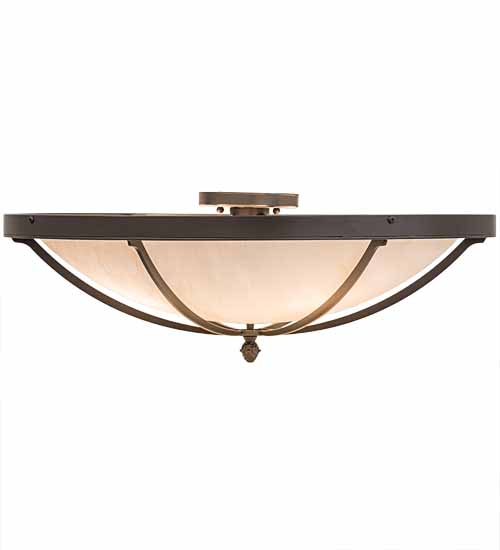 This stunning Dominga ceiling fixture features a Cr�me Carrare Idalight shade. The striking diffuser is enhanced with a handsome frame, hardware and decorative accents featured in a Timeless Bronze finish. Dominga is ideal for hallways, living spaces and other rooms in �residential, hospitality and commercial environments. Handcrafted by highly skilled artisans in our 180,000 square foot manufacturing facility in Yorkville, New York. Lens colors, metal finishes and designs can be customized to your preference. Dimmable energy efficient lamping options are offered. The ceiling fixture is UL and cUL listed for damp and dry locations.