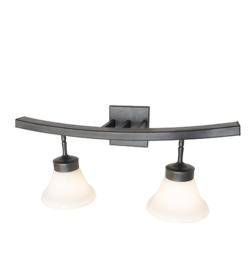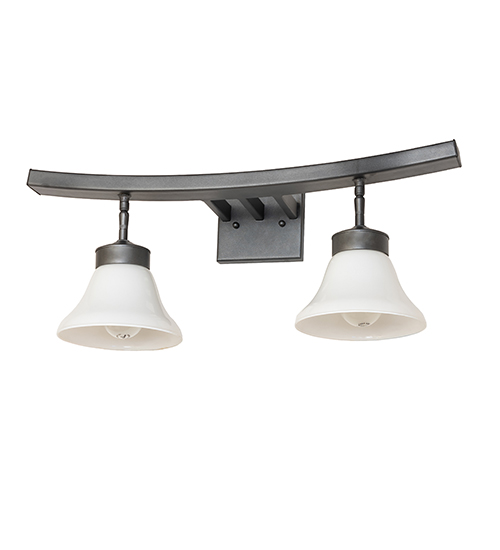 A stylish wall fixture that features two White Opal Glass Bell-shaped shades embraced by arms and a frame offered in a Blackened Pewter finish. Place this fixture in fine baths in hospitality, residential, and commercial areas. The Leya 2 Light Vanity Light is included in our American-made, American-designed, handcrafted Modern Lighting Collection and manufactured in Yorkville, New York. UL and cUL listed for dry and damp locations.