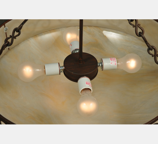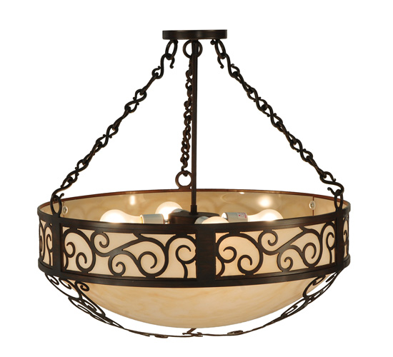 A touch of warm opulence is blended with elegant Hand-Forged Iron Scroll metalwork that evokes a handcrafted look. This ceiling pendant offers a lovely style featuring stunning Sahara Taupe Idalight. The diffuser is complemented with a Rustic Iron finish. Custom crafted by highly skilled artisans in our 180,000 square foot manufacturing facility in Yorkville, New York. Lens colors, metal finishes and fixture sizes can be customized to your needs. UL and cUL listed for dry and damp locations.