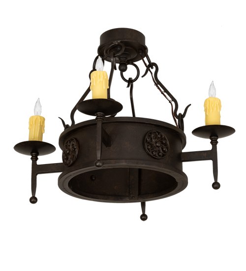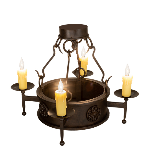 Lorenzo combines a rich charm and artistic look in this elegant lighting design. Floral medallions accentuate this stunning ceiling fixture, which is adorned with 4 exquisite Ivory faux candlelights perched on bobeches with long ballpoint stems. The fixture is enhanced with sturdy, hand forged hardware and a scrolled finial featured in a handsome Chestnut finish. The fixture is ideal for entryways, dining areas, lobbies and other rooms in a variety of residential and commercial settings. Handmade by highly skilled artisans in our 180,000 square foot manufacturing facility in Yorkville, New York. Custom sizes and finishes available. UL and cUL listed for dry and damp locations.