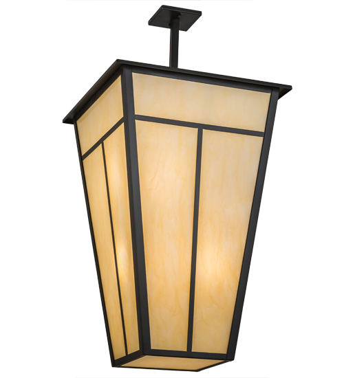 Ideal for commercial and hospitality applications in large spaces, this T Mission Pendant features stunning art glass inspired by the Arts & Crafts movement. The straight lines of this Mission design are featured on a Botticino Idalight shade which is complemented with frame and hardware finished in handsome Timeless Bronze. The pendant is handcrafted by highly skilled artisans in our 180,000 square foot manufacturing facility in Yorkville, NY. Custom sizes, styles, colors and dimmable energy efficient lamping options such as LED are available. UL and cUL listed for damp and dry locations.