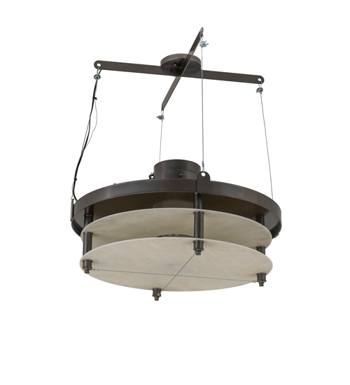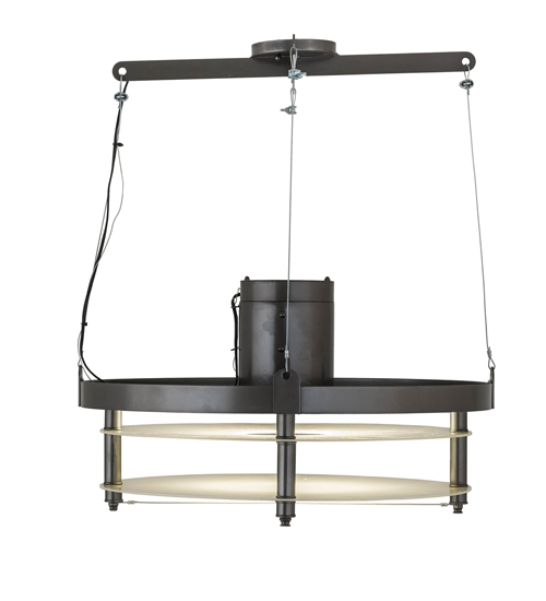 Energized by inventions that advocate reason, capitalism and individualism, Atlantis takes a contemporary approach to an industrial design. This pendant deploys thick layers of Creme Carrare Idalight halos with a Satin finish, connected with columns and hardware that are featured in a Bronze Metallic finish. Wire suspensions provide additional support and a decorative touch. The fixture is custom crafted in the USA with customer-supplied energy efficient compact fluorescent lamps for 120-277v lighting systems. Custom colors, styles, sizes and other dimmable energy efficient lamping options are available. UL and cUL listed for damp and dry locations.