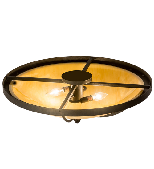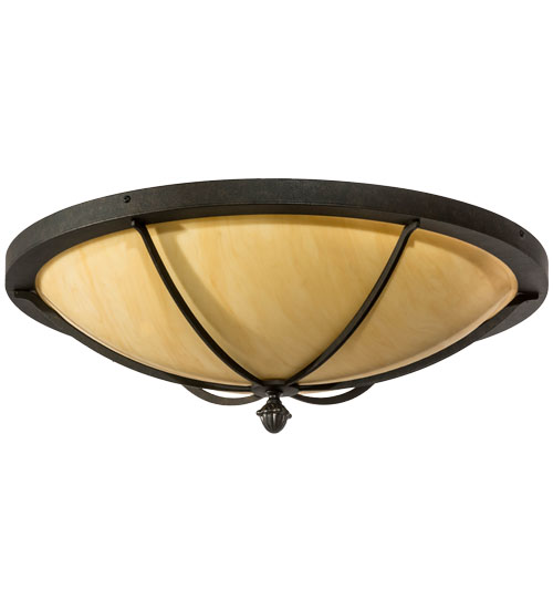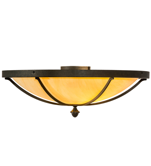 The stunning Dominga ceiling fixture features a Tawnyrock Idalight shade which is enhanced with a frame, hardware and decorative accents in a Chestnut finish. Dominga is ideal for hallways, living spaces and other rooms in both residential and commercial environments. The flushmount is handcrafted by highly skilled artisans in our 180,000 square foot manufacturing facility in Yorkville, New York. Options include dimmable energy efficient lamping such as LED, as well as custom sizes, styles and colors. UL and cUL listed for damp and dry locations.