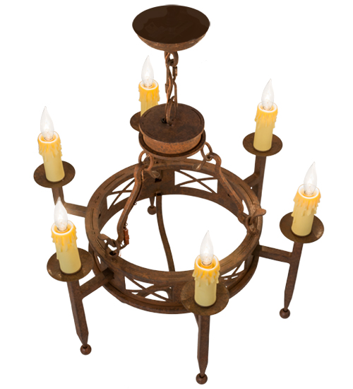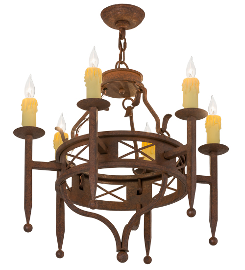 Offering a welcoming look and enchanting charm, Jasmine will add a rich element to your interiors. The chandelier is accentuated with six faux Ivory candlelights perched on bobeches with long ball point stems. The decorative accents and hardware are featured in a Rusty Nail Textured finish. Custom crafted in the USA, this chandelier is available in custom sizes, styles and colors, as well as dimmable energy efficient lamping options. The fixture is UL and cUL listed for damp and dry locations.
