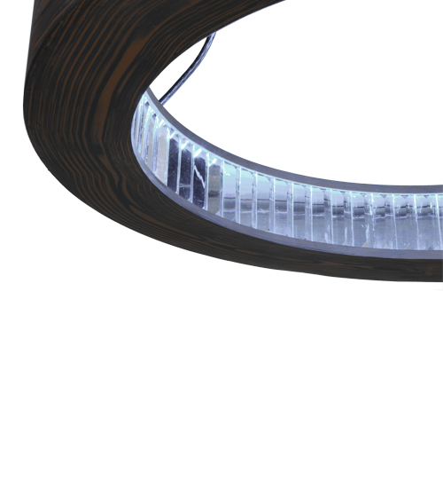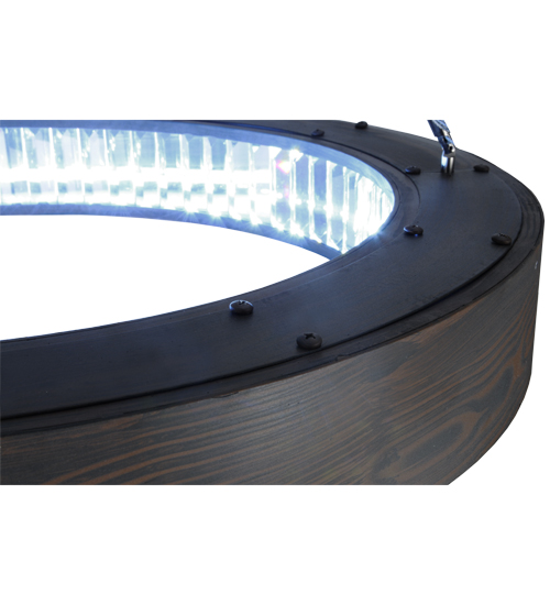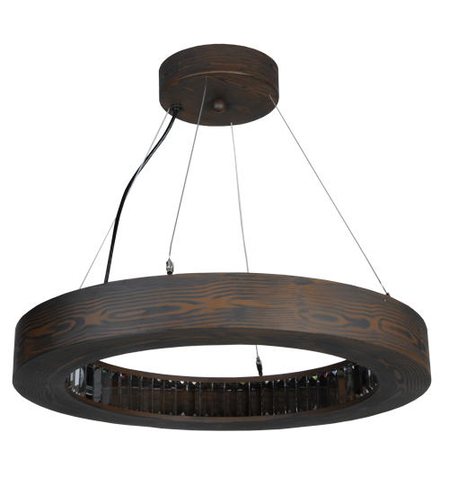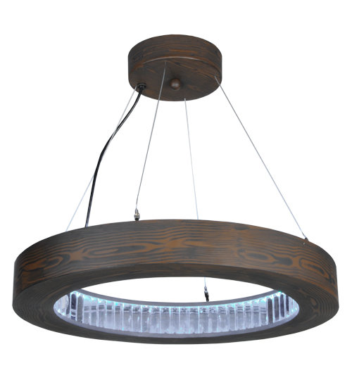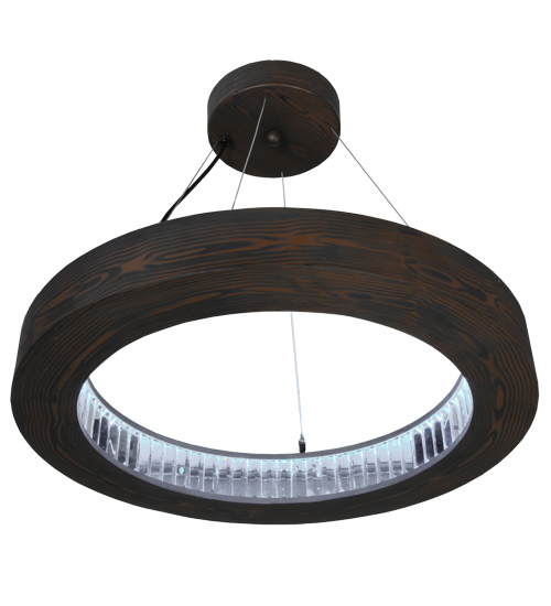 Like a fine piece of furniture, this sculpted pendant captures warmth and serenity to enhance modern living. The ring, as if from trees shaped by years of growth with the north winds pushing gently at their spine, is finished in an Armoire Hickory finish. The inner circle of this pendant features Crystal Baguettes which are illuminated with integral 18.5 watt LEDs used for energy savings and long life. Custom crafted at the foothills of the inspiring Adirondack Mountains, this fixture is offered in custom designs, finishes and sizes, and with dimmable lamping options. The pendant is UL and cUL listed for damp and dry locations.