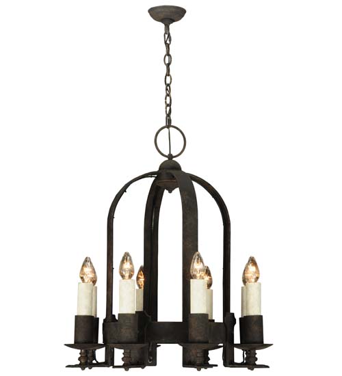 Offering a rustic design with a handsome, casual look, this stunning chandelier features eight White faux candlelights that deploy beautiful ambient illumination. The chandelier is enhanced with a warm Chestnut finish. The overall height of the pendant ranges from 36.5 to 95 inches, as the chain length can be easily adjusted in the field to meet your precise lighting requirements. Display this pendant to illuminate a dining table or foyer in fine homes, lodges, and other spaces from Traverse City, Michigan, to Lake Tahoe, Nevada, to Lake Geneva, Wisconsin. The Aragon Chandelier is included in our American-made, American-designed, handcrafted Gothic Collection and manufactured in Yorkville, New York. This lighting fixture is UL and cUL listed for dry and damp locations.