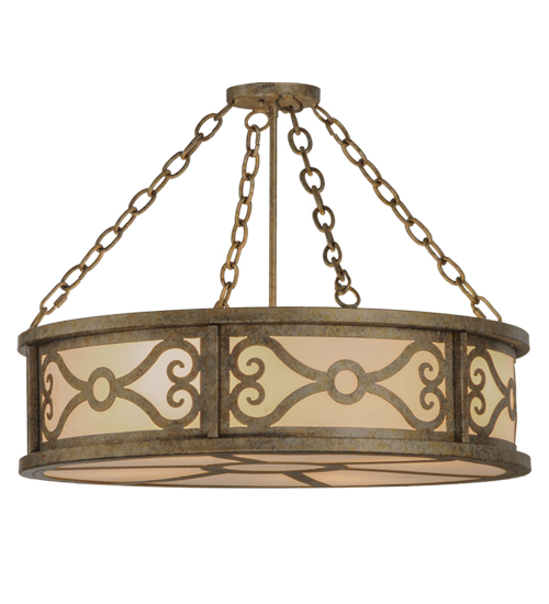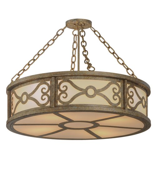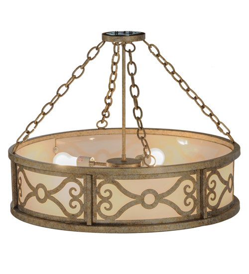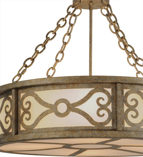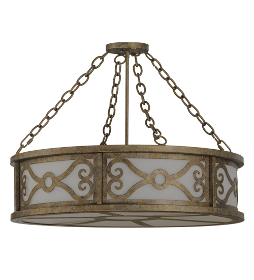 A distinctive lighting design. Donya reveals an exquisite rotund profile with an appealing design that combines Corinth finished Hand-Forged Iron scrollwork with a Statuario Idalight diffuser. The fixture reflects the innovative blend of old-world craftsmanship and 21st century technology. The ceiling fixture is handcrafted by talented artisans in our 180,000 square foot manufacturing facility in Yorkville, New York. The shade color, metal finishes and fixture sizes can be customized to your needs. UL and cUL listed for dry and damp locations.