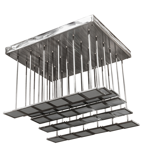 A massive modern chandelier using the latest Integral Organic Light Emitting Diode (OLED) nanotechnology. The dimmable Kossar luminaire is created with 36 unique Integral OLED ultra thin panels- all delivering energy efficient 4000K illumination without glare from a flat light source. The hardware, decorative accents and frame are featured in a stunning Alloy Wheel Clear Coat finish. This luminaire is combined with two fixtures: model 216323 26″” Long Kossar and model 216328 27″” Long Kossar to create model 214121 80″” Long Kossar. Custom crafted in our 180,000 square foot manufacturing facility in Yorkville, New York. OLED panels, metal finishes and fixture sizes can be customized. Contact us for additional sustainable OLED lighting solutions.