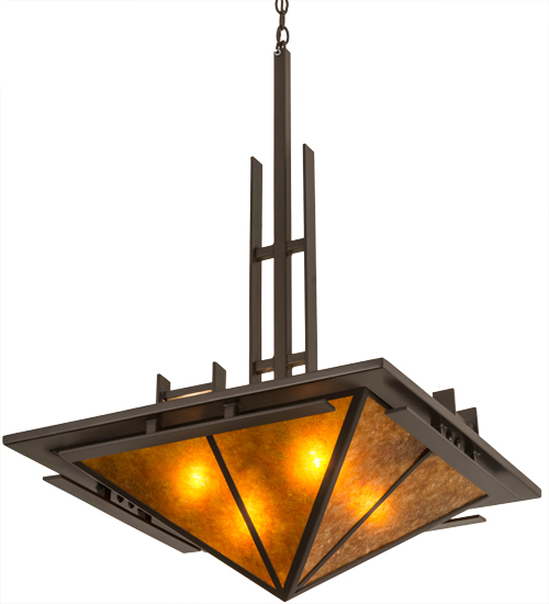 Inspired by the simple forms and classic workmanship of the Craftsman Movement, this handsome minimalist design evokes light through Amber Mica, which is enhanced with decorative hardware and accents featured in a warm Timeless Bronze finish. This ceiling fixture is handcrafted by our artisans in the USA in Upstate New York and illuminates with four customer-supplied LED bulbs. Custom colors, sizes and styles are available. Dimmable lamping options are offered. The pendant is UL and cUL listed for dry and damp locations.
