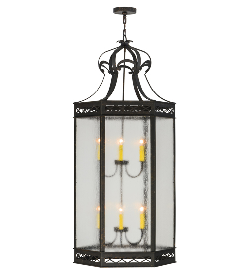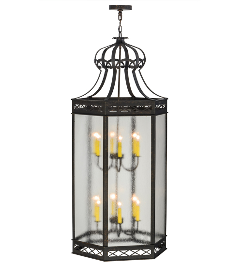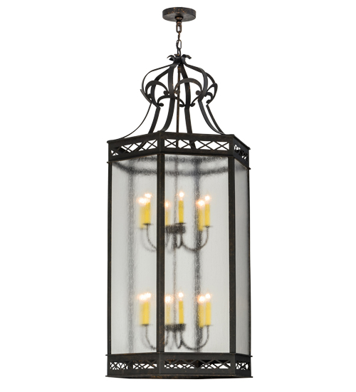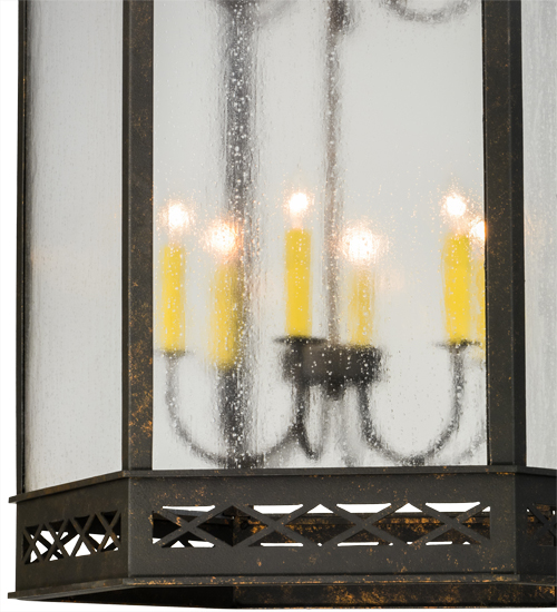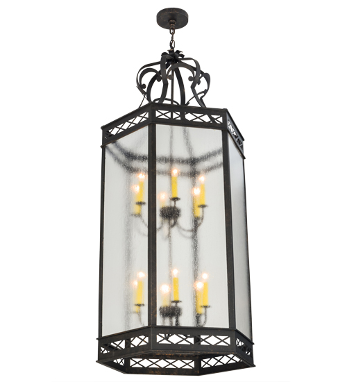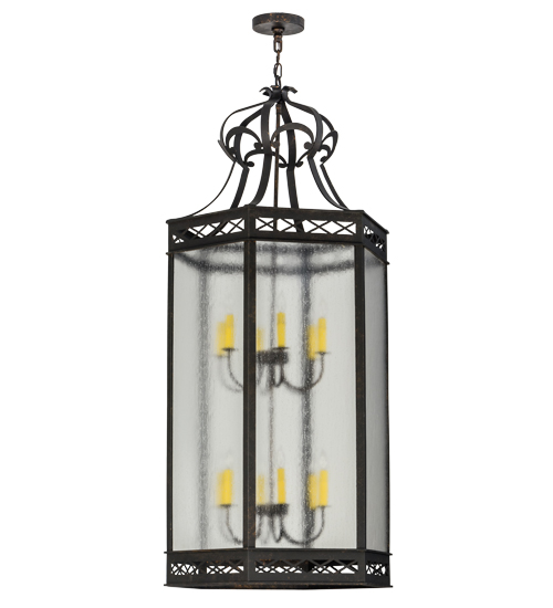 Enhance your interior space with handcrafted warmth and welcoming illumination as this striking pendant integrates lattice designed borders on a Rainstone Idalight diffuser. The shade reveals 2 six-light faux candelabras within and decorative accents and is complemented with hardware and decorative accents featured in a handsome Copper Rust finish. Custom crafted in the USA, this fixture is available in custom sizes, styles, colors and dimmable energy efficient lamping options such as LED. This pendant is UL and cUL listed for damp and dry locations.
