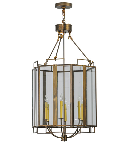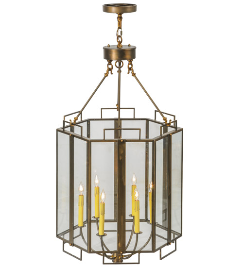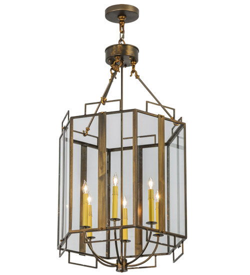 Utilizing a blend of old-world craftsmanship and modern technology… Abbey brings home unsurpassed quality and appeal. Ambient light is diffused through Clear Glass panels, which reveal six Ivory faux candlelights that provide beautiful ambient illumination. The shade is complemented by an Antique Copper finished frame and decorative accents. It is ideal for illuminating dining rooms and hallways in homes and hotels, from Lowell, Massachusetts, to High Point, North Carolina, to Pueblo, Colorado. The overall height ranges from 47 to 106 inches, as the chain can be easily adjusted in the field. The Abbey Pendant is included in the American-designed, handcrafted Inspirational Lighting Collection. UL and cUL listed for dry and damp locations.