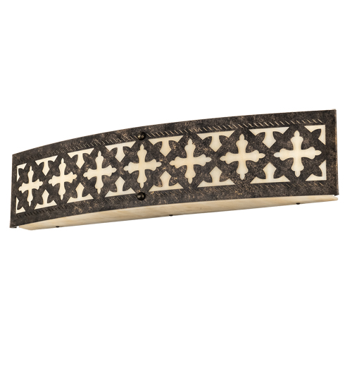 Offering a blend of timeless craftsmanship and classic design. The Cardiff wall fixture brings home unsurpassed quality and shapely appeal. The Sahara Taupe Idalight lens features a matching bottom diffuser and stunning Gothic-styled Cross accents. Cardiff is enhanced with a dramatic design and frame offered in a Golden Bronze finish. The exquisite wall sconce beautifully illuminates hallways and living spaces, or it can be used as a lovely vanity light in fine powder rooms in homes and restaurants. The Cardiff Wall Sconce is included in our American-made, American-designed, handcrafted Gothic Lighting Collection, and manufactured in Yorkville, NY. The fixture is UL and cUL listed for dry and damp locations.