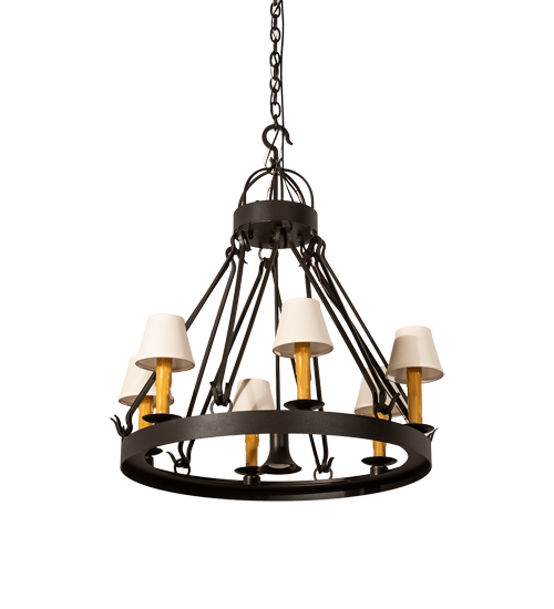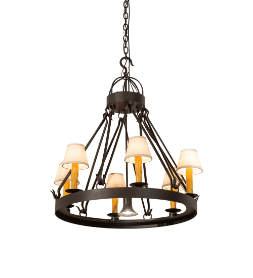 Blending an elegant style with a rich luxurious look. The Lakeshore chandelier features a Wrought Iron finished ring that provides timeless beauty and overall illumination. 6 Amber faux candle lights crowned with Natural Linen Textrene shades provide ambient illumination while a down-light delivers functional lighting. The overall height ranges from 37 to 108 inches as the chain length can be easily adjusted in the field to accommodate your specific lighting application needs. Custom crafted by highly skilled artisans in our 180,000 square foot manufacturing facility in Yorkville, New York. UL and cUL listed for dry and damp locations.