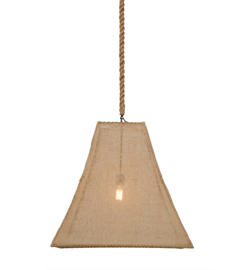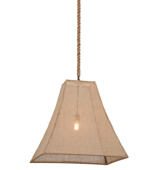 This unique lighting design features Beige Burlap hand woven on a square bell shaped steel frame. The fixture is custom crafted by highly skilled artisans in our 180,000 square foot manufacturing facility in Yorkville, New York. This pendant is available in custom colors, sizes, styles and energy efficient lamping. UL and cUL listed for damp and dry locations.