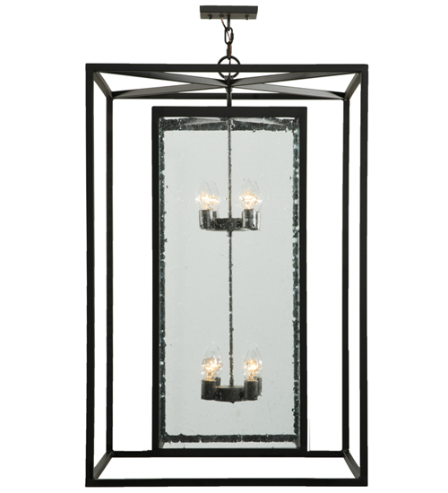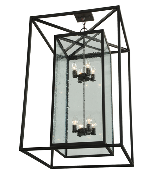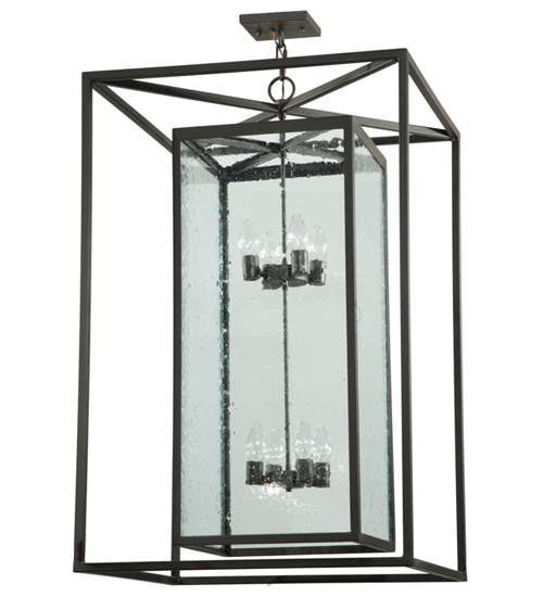 A sophisticated architecturally styled fixture is designed with a pizazz that is unique, fresh and stylish. Give your decor an extra edge with this breathtaking fixture, which is highlighted with a solid steel structure complemented with a Clear Seeded Glass Lens revealing 8 faux candlelights. The hardware and frame are featured in a handsome Oil Rubbed Bronze finish. Handmade in our 180,000 square foot manufacturing facility in Yorkville, New York. Available in custom sizes, styles and finishes, as well as dimmable energy efficient lamping options such as LED. UL and CUL listed for dry and wet locations.