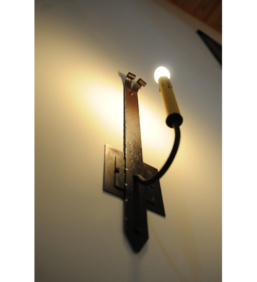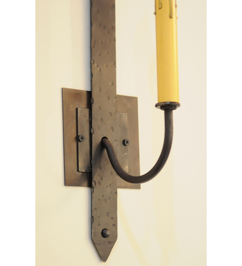 A traditional single candlelight design is featured on this unique Gothic styled wall plate. This Primitive wall sconce showcases a decorative accent hand finished in Hand Wrought Iron reminiscent of old world castles. Multiple candlelight fixtures are offered in a variety of finishes and styles. Handcrafted in our 180,000 square foot manufacturing facility in Yorkville, New York. Fixture designs, metal finishes and sconce sizes can be customized to meet your needs. UL and cUL listed for dry and damp locations.