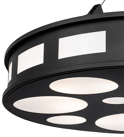 Forever hip and timeless, this Retro styled dot and circle pattern is inspired by a 35 mm movie reel. The unique slender and round frame is featured in a Blackwash finish while beautiful ambient illumination is projected through a Statuario Idalight diffuser. Geo is perfect for illuminating a home theater, living room, concession stand, movie themed bar, dining area and other residential and commercial spaces. Handcrafted by highly skilled artisans in the USA, this fixture is available in custom designs, colors and finishes, as well as dimmable energy efficient lamping options such as LED. The flushmount is UL and cUL listed for damp and dry locations.